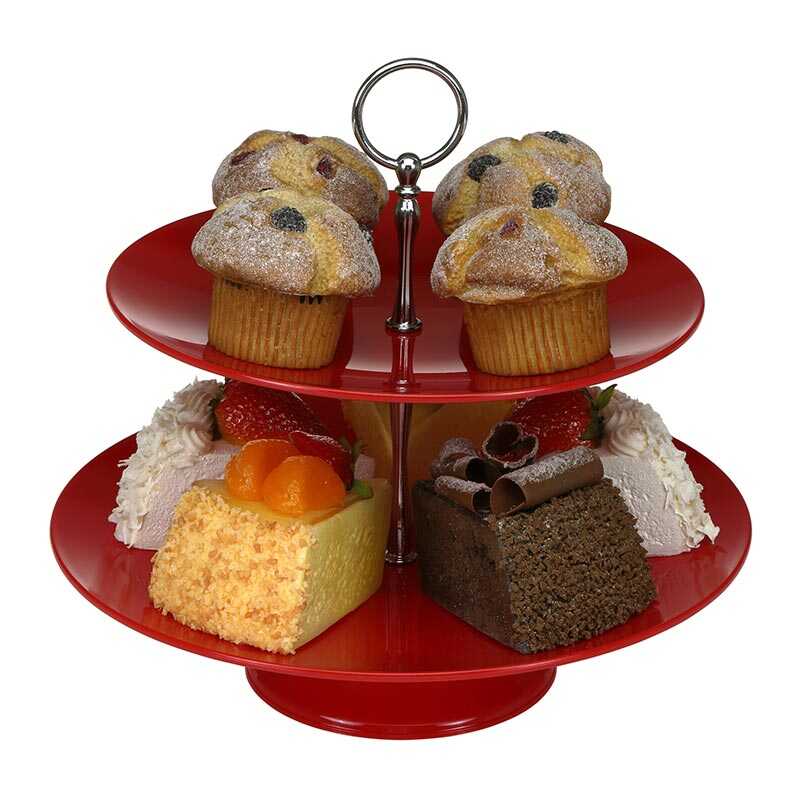 Bora Plastik 2 Katlı Teşhir Tepsisi, Yuvarlak 25x30 cm, Kırmızı