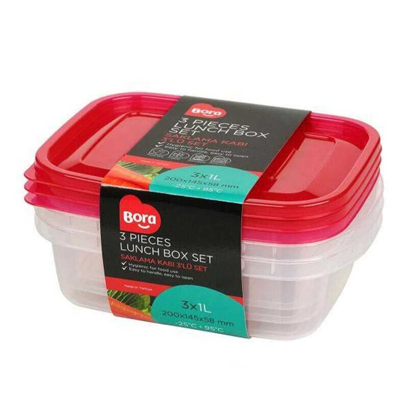 Bora Plastik 3'lü Saklama Kabı, 1 Lt, Şeffaf Gövde