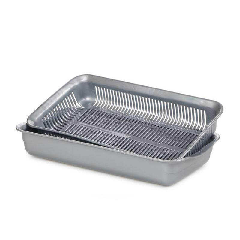 Bora Plastik Dayanıklı Sebze Meyve Yıkama Süzgeci, sağlam ve dayanıklı plastik malzemeden üretilmiş olup uzun ömürlü bir kullanım sunar. Gri rengi ile mutfaklarda sade ve profesyonel bir görünüm sağlar.