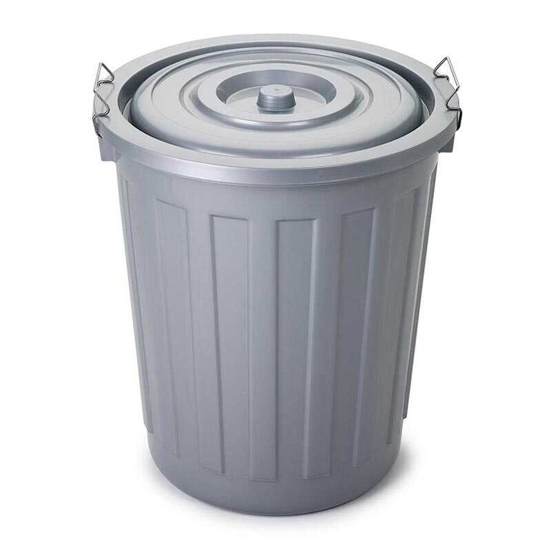 Bora Plastik Kilitli Çöp Kovası, Kapaklı, 58 Lt, Gri