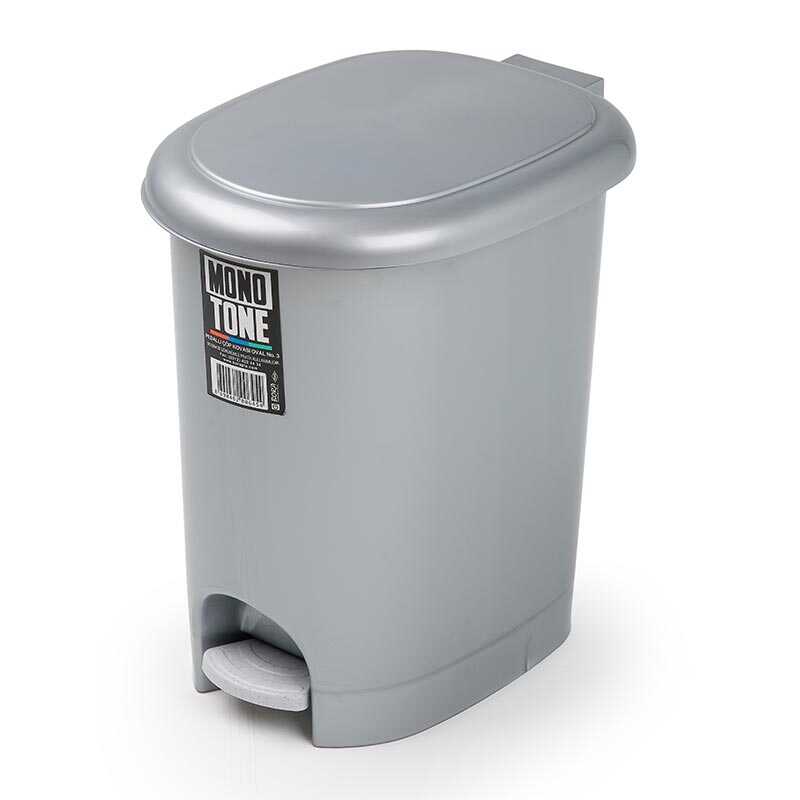 Bora Plastik Pedallı Çöp Kovası, Oval, 17 Lt, Gri