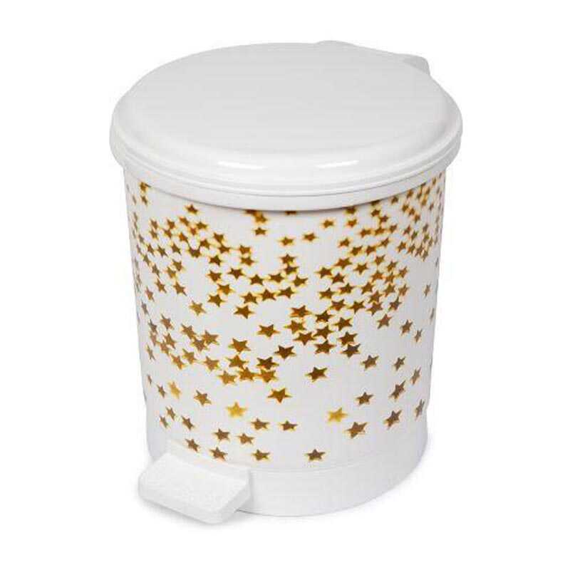 Bora Plastik Pedallı Kovalı Çöp Kovası, No: 1, 6 Lt, Beyaz Gövde, Yıldız Desenli