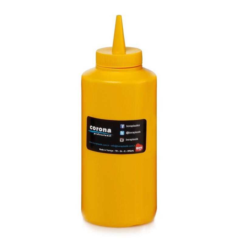 Bora Plastik Profesyonel Sıkma Hardal Şişesi, Kapaklı, 420 ml, Sarı