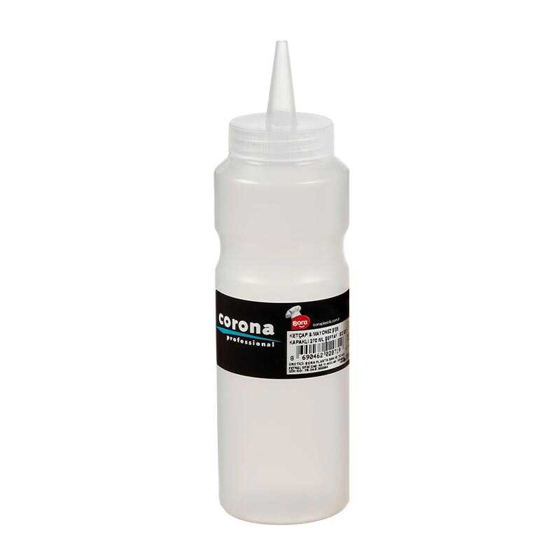 Bora Plastik Profesyonel Sıkma Mayonez Şişesi, Kapaklı, 270 ml, Şeffaf