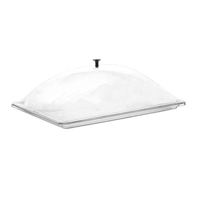 Bombeli tasarımı, ürünlerle temas etmeden geniş bir iç hacim oluşturur ve özellikle pastane ürünleri, unlu mamuller ve hazır gıdalar için ideal koruma sağlar. Polikarbonat malzemeden üretilmiş olması sayesinde darbelere karşı yüksek dayanıklılık sunar ve yoğun kullanıma uygundur. Pürüzsüz yüzeyi hijyenik kullanım sağlarken, kolay temizlenebilir yapısı profesyonel mutfak ve teşhir alanlarında kullanım kolaylığı sunar.