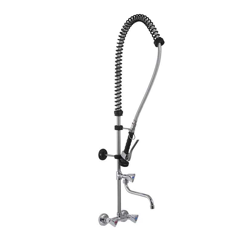 Cancan 0504 MT04 Duvara Monte Duş Sprey Ünitesi, endüstriyel mutfaklar ve sanayi tipi bulaşık makineleri için özel olarak tasarlanmış ön yıkama ünitesidir. Duvar tipi batarya ve ara musluk ile donatılmış olup sebze ve meyve yıkama eviyelerinde etkin kullanım sağlar. Spiral yaylı hortumu kırılma ve bükülmelere karşı korurken, 360° dönebilen elcik maksimum kullanım rahatlığı sunar. Tamamen paslanmaz yapısı uzun ömürlü ve hijyeniktir.