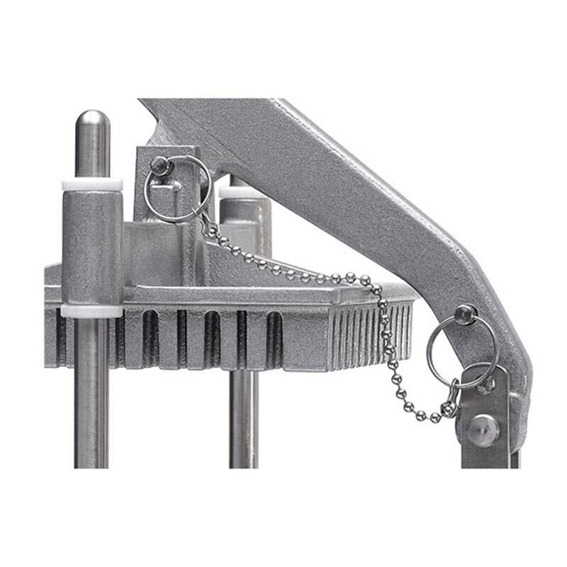 Hassas bilenmiş paslanmaz çelik bıçaklar, bükülmeyi önlemek için çerçeve içerisine yerleştirilmiş ve iç içe geçecek şekilde tasarlanmıştır. Kaymaz ayaklara sahip açılı bacak yapısı, cihazın tezgâh üzerinde sabit kalmasını sağlayarak operatöre dengeli ve güvenli kesim imkânı sunar. Tamamı gıdayla temasa uygun paslanmaz çelik yapısı sayesinde uzun ömürlü ve profesyonel kullanıma uygundur.