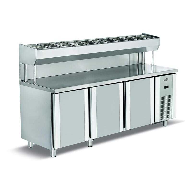 Pizzacılar, restoranlar, kafeler ve fast food mutfaklarında pizza, salata ve sandviç hazırlama süreçlerinde malzemelerin düzenli ve soğuk şekilde muhafaza edilmesi için uygundur.