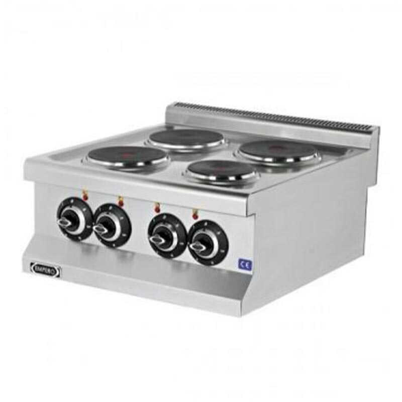 Empero 4 Pleytli Elektrikli Ocak, profesyonel mutfaklarda hızlı ve verimli pişirme sağlar. 6 kademeli şalter ile sıcaklık ayarı hassas şekilde kontrol edilebilir, böylece farklı yemek pişirme ihtiyaçları karşılanır.