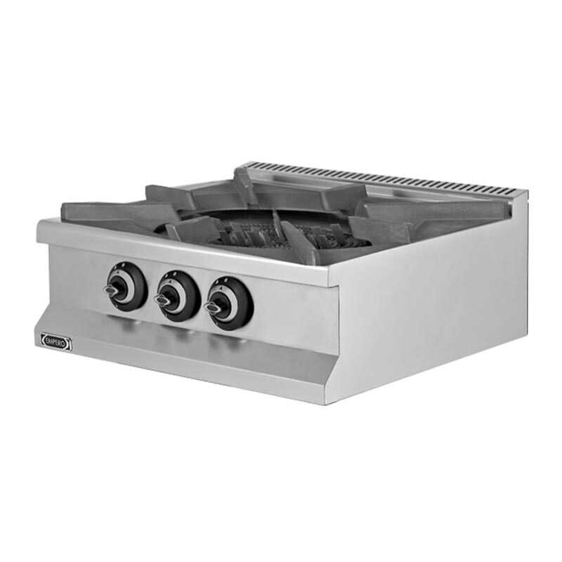 Empero 900 Plus 4 Brülörlü Set Üstü Wok Ocak, profesyonel mutfaklarda yüksek ısı gerektiren wok pişirme işlemleri için tasarlanmış güçlü ve verimli bir ekipmandır. LPG ile çalışan yapısı sayesinde yüksek performans sunarken, 4 brülörlü sistemi ile aynı anda birden fazla işlem yapılmasına olanak tanır.