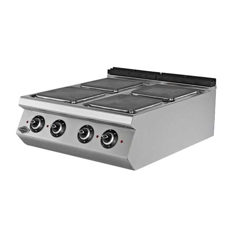 Empero 900 Plus 4 Pleytli Ocak, 16 kW gücünde elektrikli yapısı ve 6 kademeli şalteri ile profesyonel mutfaklarda hassas ve hızlı pişirme imkânı sağlar. Paslanmaz çelik gövdesi ile dayanıklı ve hijyenik kullanım sunar.