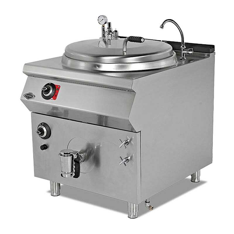 Soğuk ve sıcak su doldurma musluğu, tahliye musluğu ve karşı ağırlıklı kapak sayesinde kullanım kolaylığı sağlar. Çift cidarlı ceket yapısı ile ısı verimliliği artırılmıştır. Paslanmaz çelik gövdesi sayesinde hijyenik, dayanıklı ve uzun ömürlü bir kullanım sunar.