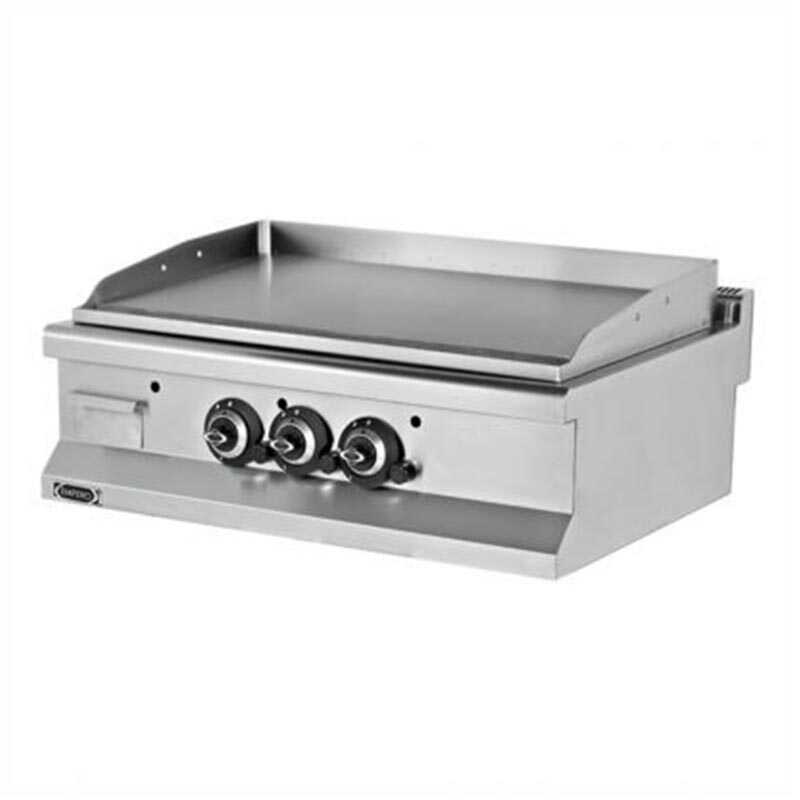 Doğalgaz (NG) ile çalışan bu düz pleyt ızgara, tam modüllerde iki bölgeli pişirme özelliği sayesinde profesyonel mutfaklarda dengeli ve verimli sonuçlar sunar. Geniş pişirme yüzeyi ile yüksek kapasitede kullanım imkânı sağlar.