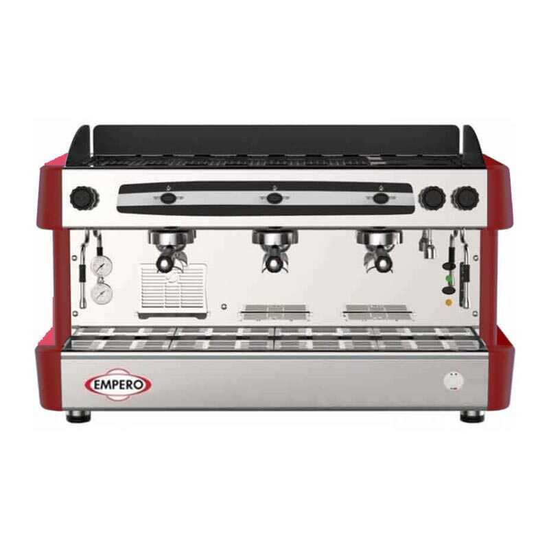 Empero Yarı Otomatik Espresso Kahve Makinesi, 3 Gruplu, 230 V, Kırmızı
