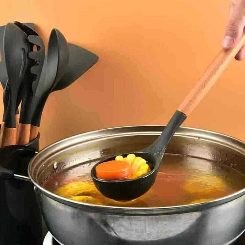 Epinox AHK-11 Silikon Kepçe, Ahşap Saplı, 31 cm