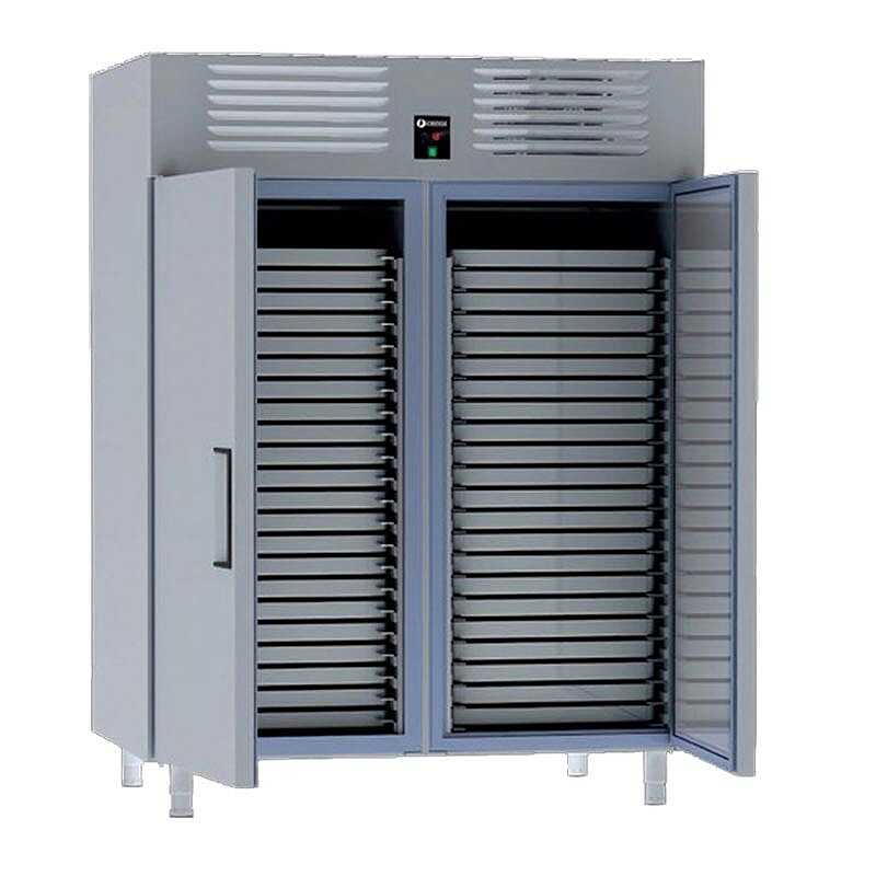 Iceinox VTS 1460 N CR Dik Tip Patisserie Derin Dondurucu, yüksek hacimli üretim yapan pastane ve profesyonel mutfaklar için tasarlanmış güçlü ve dayanıklı bir soğuk muhafaza çözümüdür. 1460 litrelik geniş iç hacmi ve 44 adet 60x80 cm tepsi kapasitesi sayesinde büyük ölçekli işletmelerde maksimum depolama verimliliği sağlar. Yeni nesil iç tasarımı, eşit sıcaklık dağılımı sunarak tüm ürünlerin homojen şekilde korunmasına yardımcı olur.