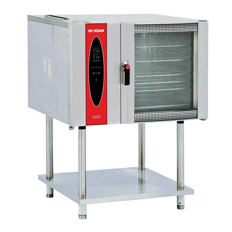 İnoksan FKG-022E, pastaneler, kafeler ve profesyonel mutfaklar için tasarlanmış kompakt gazlı konveksiyonlu fırındır. 10 tepsi kapasitesi ile hamur işleri, pasta ve unlu mamullerin hızlı ve homojen şekilde pişmesini sağlar. Paslanmaz çelik gövde, dayanıklılık ve hijyen sunar.