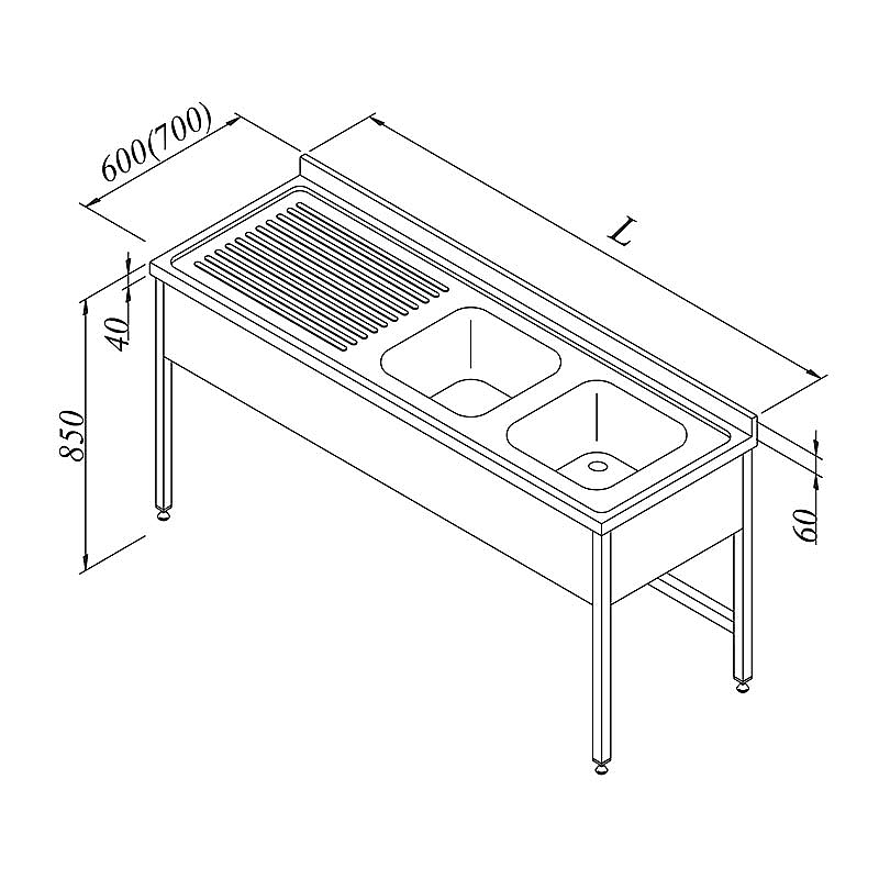 Üzerinde bulunan 2 adet 600x300 mm pres baskı monoblok evye gözü, büyük hacimli yıkama ve hazırlık işlemleri için idealdir. 3 perdeli konstrüksiyon yapısı tezgaha ekstra sağlamlık kazandırır ve uzun süreli kullanımda stabilite sağlar.