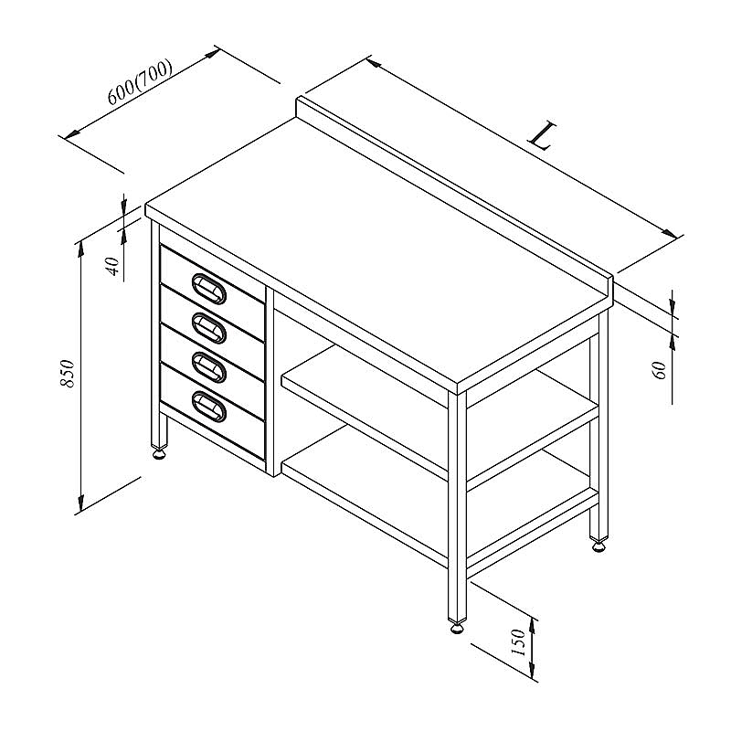Öztiryakiler Ara Raflı Çekmeceli Sırtlı Çalışma Tezgahı, 160x70 cm, Paslanmaz Çelik