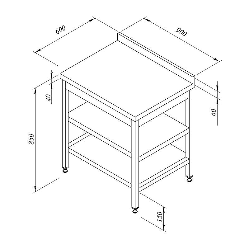Öztiryakiler Ara Raflı Sırtlı Çalışma Tezgahı, 90x60 cm, Paslanmaz Çelik