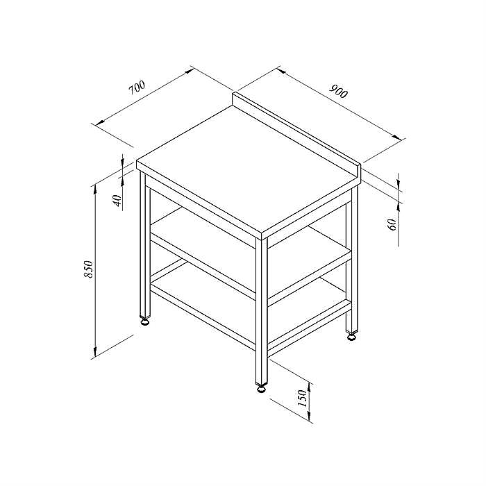 Öztiryakiler Ara Raflı Sırtlı Çalışma Tezgahı, 90x70 cm, Ayarlanabilir Ayaklı