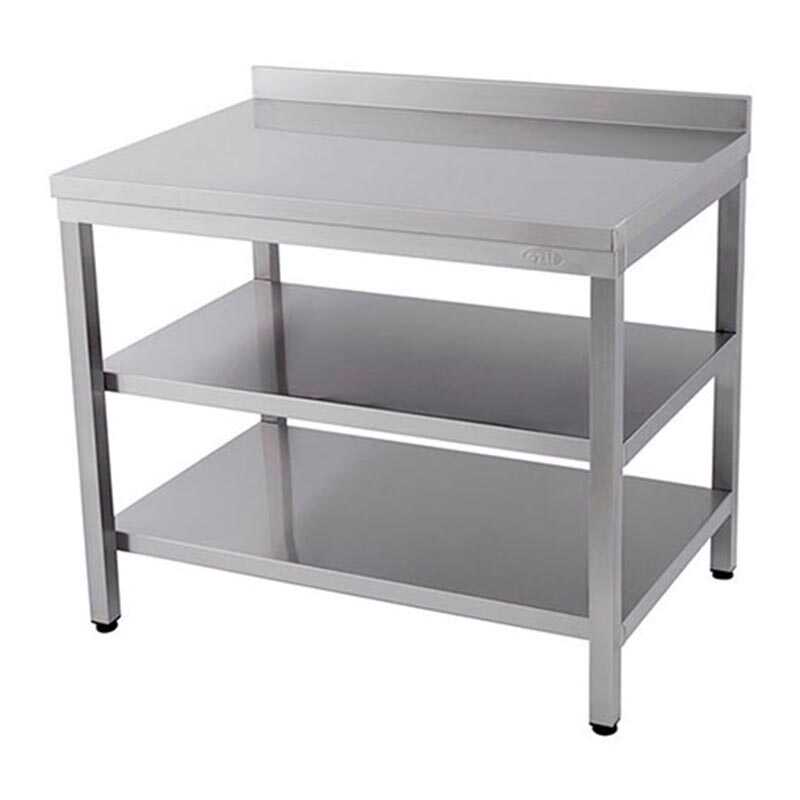 Öztiryakiler Ara Raflı Sırtlı Çalışma Tezgahı, Paslanmaz Çelik, 120x60 cm