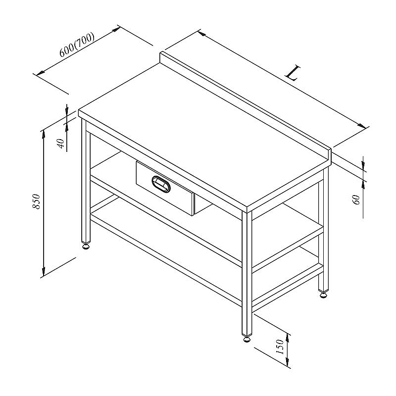 Öztiryakiler Ara Raflı Tek Çekmece Sırtlı Çalışma Tezgahı, 160x60 cm, Ayarlanabilir Ayaklı