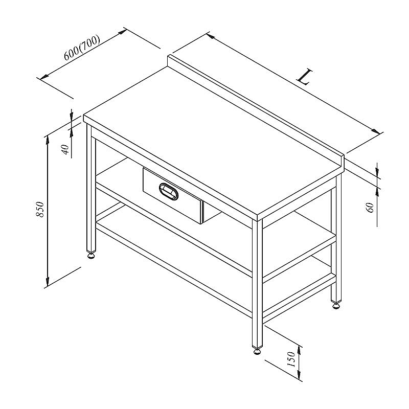 Öztiryakiler Ara Raflı Tek Çekmeceli Sırtlı Çalışma Tezgahı, 160x70 cm, Paslanmaz Çelik