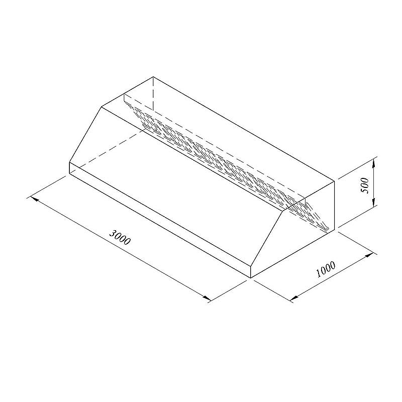 Profesyonel mutfaklar için tasarlanan duvar tipi filtreli davlumbaz, 300x100 cm geniş yapısı ile yoğun pişirme alanlarında etkili hava tahliyesi sağlar. Paslanmaz çelik konstrüksiyonu sayesinde hijyenik, dayanıklı ve uzun ömürlü kullanım sunar.