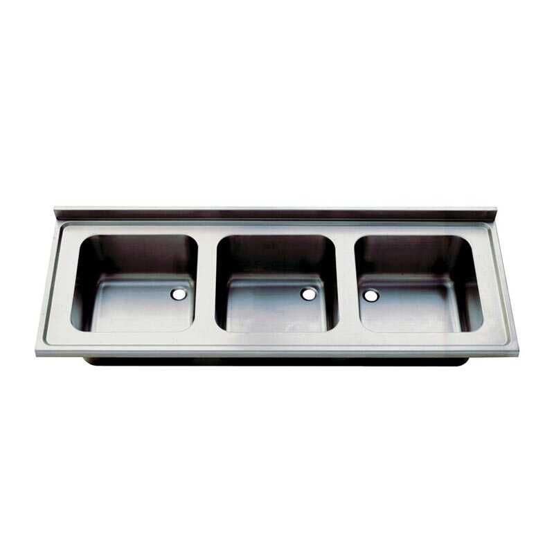 Öztiryakiler Evye, Tablalı, 190x70 cm, Üç Gözlü, Damlalıksız, Paslanmaz Çelik, 50x50x30 cm