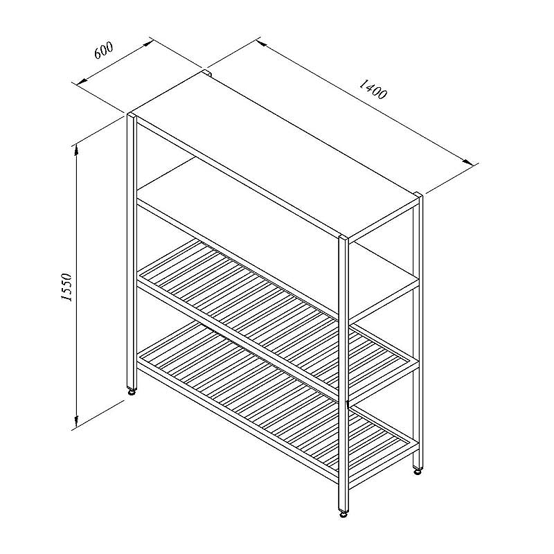 Öztiryakiler İstif Rafı, 2 Düz 2 Izgara Tabla, 140x60 cm, Paslanmaz Çelik