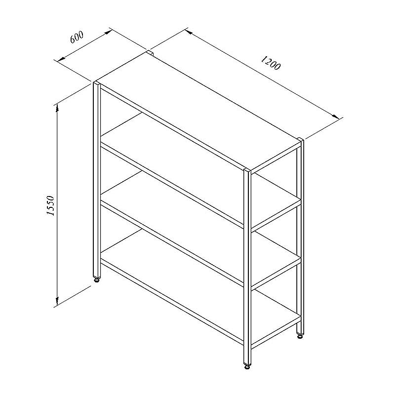Öztiryakiler İstif Rafı, 4 Düz Tabla, 120x60 cm, Paslanmaz Çelik