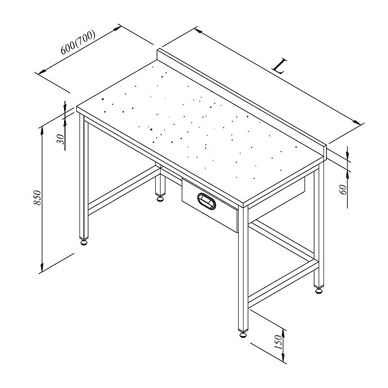 Üst tabla alınları 30 mm ve sırt kısmı 60 mm yüksekliğinde olup ergonomik kullanım sunar. GN 1/1-100 uyumlu teleskopik çekmece ile malzemelerin kolayca erişilebilir ve düzenli şekilde depolanmasına imkan tanır. 40x40 kutu profil ayaklar ve ayarlanabilir plastik rotil ayaklar ile zemine uyumlu ve stabil kullanım sağlar. Nötr tip tasarımı, farklı mutfak ve hazırlık alanlarına kolay entegrasyon sağlar.