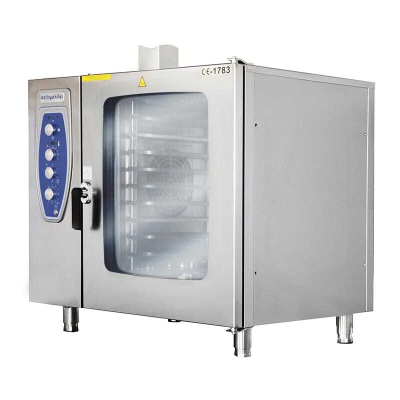 10 adet GN 1/1 tepsi kapasitesi ile yüksek üretim hacmine uygun olan bu model, paslanmaz çelik fan sistemi sayesinde homojen pişirme performansı sunar. Buhar püskürtme özelliği ile nemli pişirme yapılabilirken, çift camlı ve silikon contalı kapı yapısı enerji tasarrufuna katkı sağlar. LPG ve doğalgaz uyumluluğu ile farklı mutfak altyapılarına kolayca adapte edilebilir.