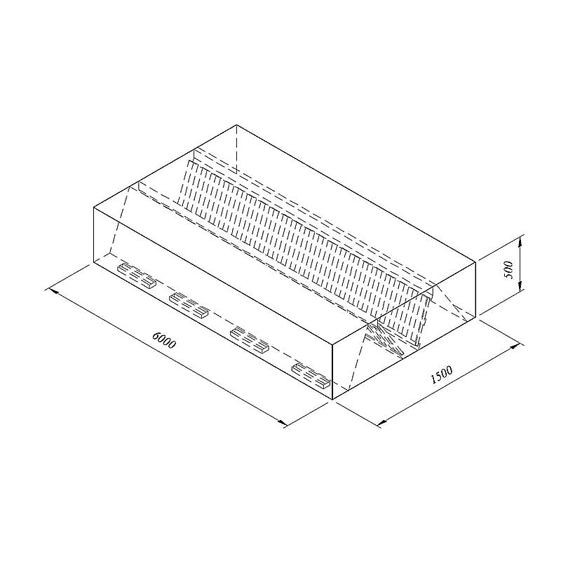 Öztiryakiler Orta Tip Filtreli Çift Cidar Davlumbaz, 600x150 cm, Endüstriyel