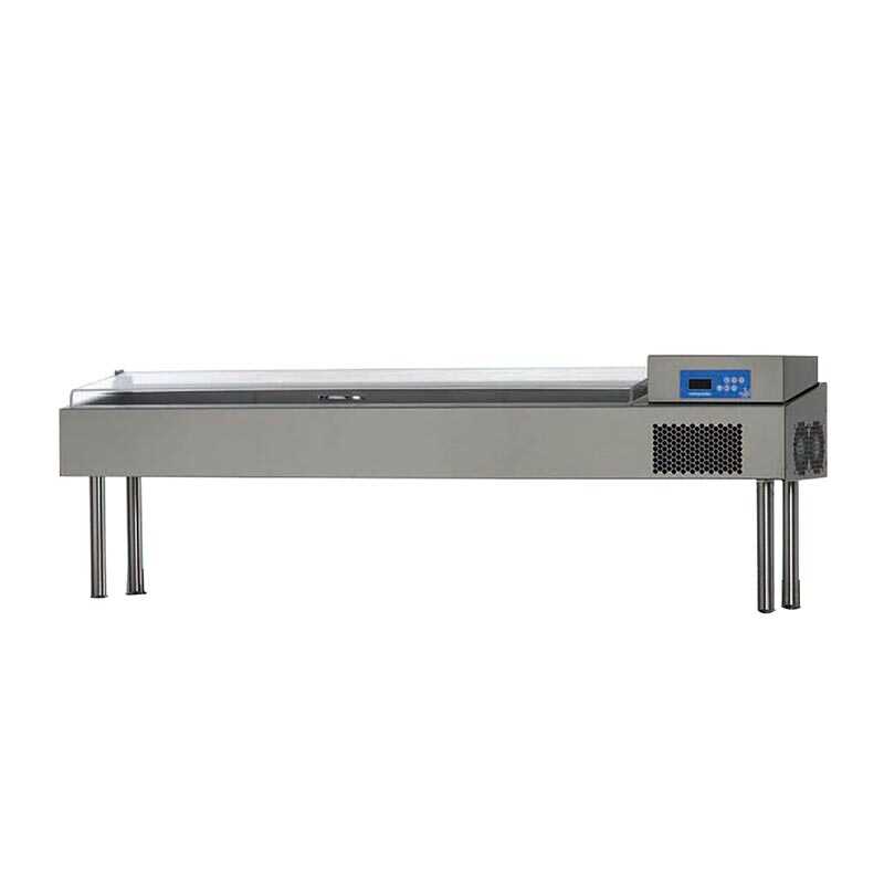 Pleksiglas kapaklı üst yapısı, hem ürünleri dış etkenlerden korur hem de kolay erişim imkanı sunar. 11 adet GN 1/4 küvet kapasitesi ile yoğun mutfak operasyonlarında düzenli ve verimli bir çalışma alanı oluşturur.
