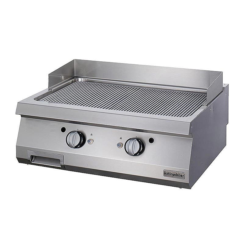 Öztiryakiler Set Üstü Oluklu Grill Plate, 80x90 cm, Krom, Gazlı, Endüstriyel