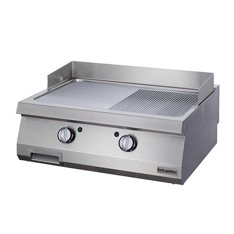 Öztiryakiler Set Üstü Yarı Oluklu Grill Plate, 80x90 cm, Paslanmaz Çelik, Elektrikli