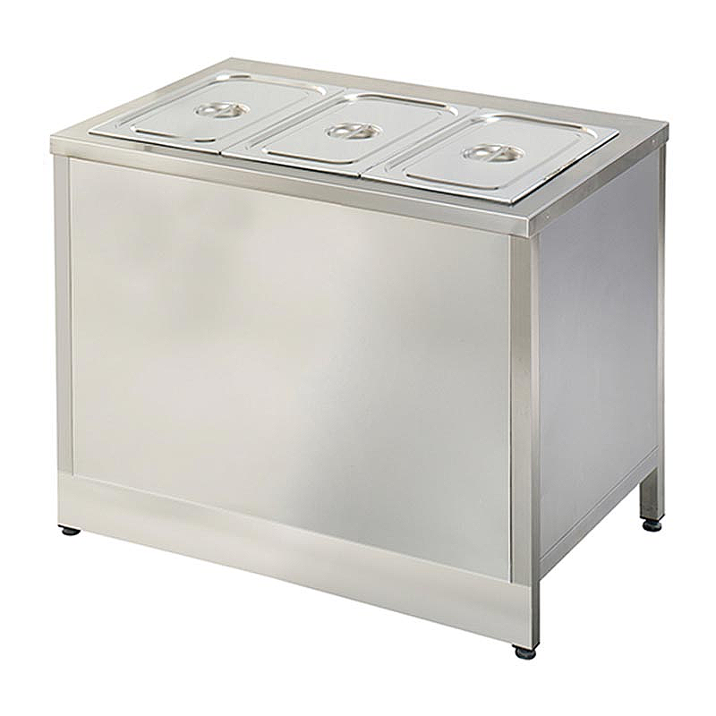 3 adet GN 1/1-150 kapasitesi ile yoğun servis ihtiyaçlarına cevap verir. Alt taban rafı ek depolama alanı sunarken, ayarlanabilir ayakları sayesinde farklı zeminlerde dengeli kullanım sağlar.