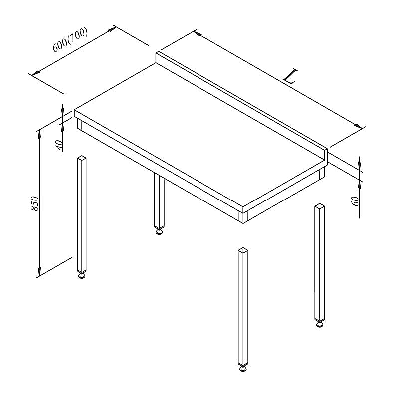 Profesyonel mutfaklar için tasarlanmış sırtlı demonte çalışma tezgahı, 60x70 cm ölçüleri ile kompakt ve kullanışlı bir çalışma alanı sunar. Paslanmaz çelik konstrüksiyonu sayesinde hijyenik, dayanıklı ve uzun ömürlü kullanım sağlar.