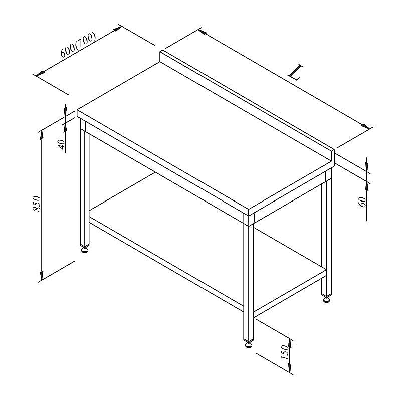 Paslanmaz çelikten üretilmiş bu sırtlı çalışma tezgahı, profesyonel mutfaklarda dayanıklılık ve hijyen sunar. Taban raflı yapısı sayesinde ek depolama alanı sağlayarak mutfak düzenini artırır.