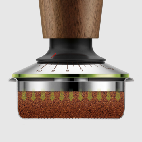 7 kg ile 10 kg arasında ayarlanabilir basınç sunan sistemi, kahve yatağına uygulanan kuvveti kontrol etmenizi sağlar. Üzerindeki kuvvet göstergesi sayesinde istediğiniz basıncı seçebilir ve her kullanımda aynı sonucu elde edebilirsiniz. Hizalama plakası, kahvenin eğik sıkışmasını önleyerek ekstraksiyon sırasında daha stabil bir akış sağlar.