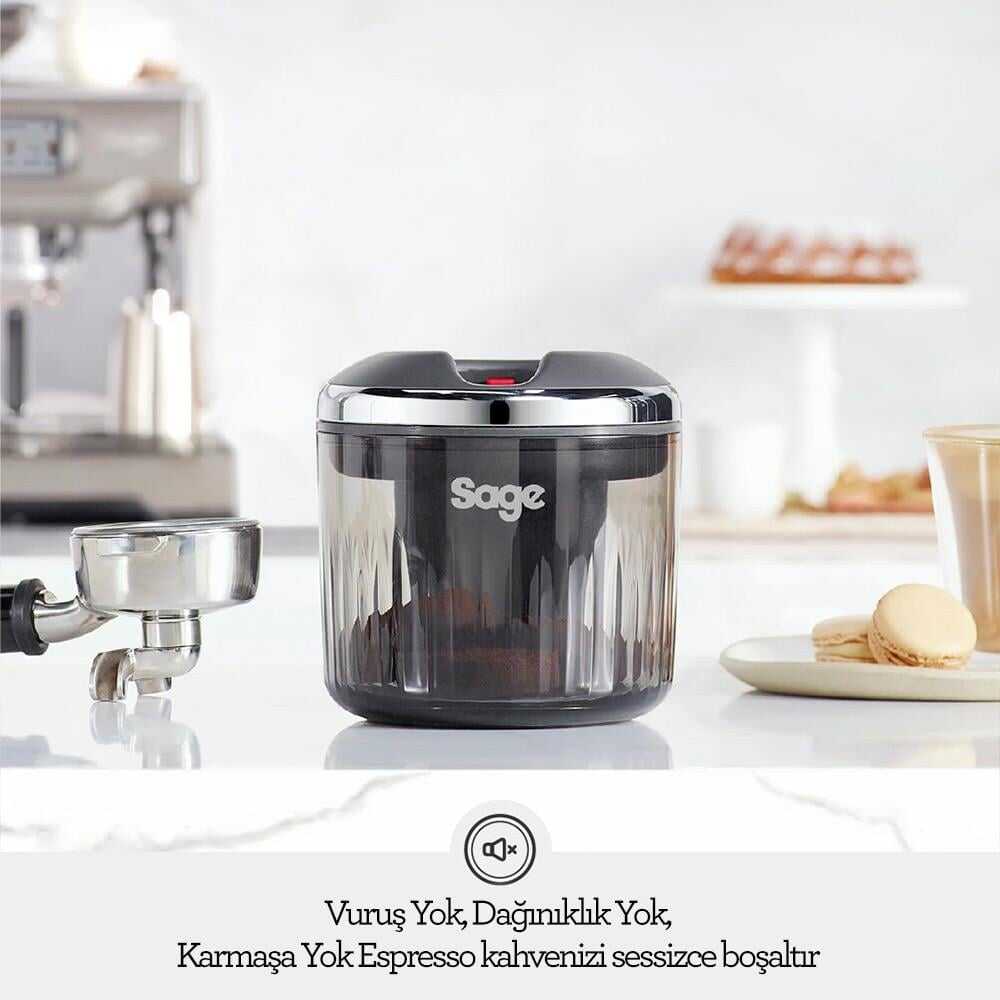 Sage The Puck Sucker™ Vakumlu Kahve Posa Kabı, espresso hazırlama sürecini daha pratik ve temiz hale getiren yenilikçi bir aksesuardır. Vakum teknolojisi sayesinde portafiltrede kalan kahve posasını tek hareketle ve zahmetsiz şekilde çıkarır.