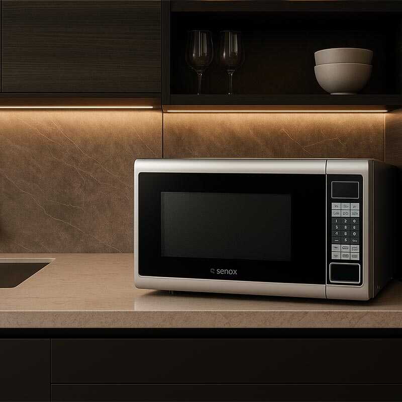 Senox MC30 Mikrodalga Fırın, mutfakta hızlı ve pratik pişirme ihtiyaçlarınızı karşılamak için tasarlanmış geniş hacimli ve kullanışlı bir çözümdür. 30 litre kapasitesi sayesinde hem ev hem de küçük işletmelerde rahatlıkla kullanılabilir.