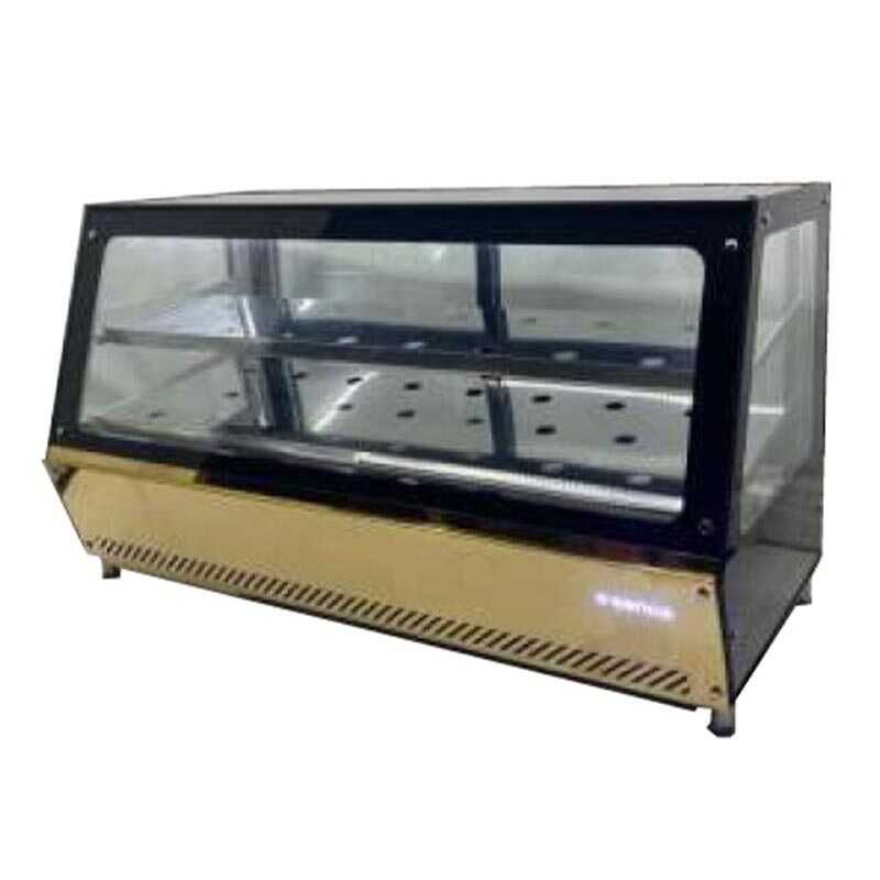 Senox Set Üstü Sıcak Teşhir Dolabı, 120 litre kapasitesi ile yiyeceklerin sıcak şekilde sergilenmesini ve muhafaza edilmesini sağlayan pratik bir çözümdür. Dik camlı tasarımı sayesinde ürünler müşteriler tarafından kolayca görülebilir ve şık bir sunum imkânı sağlar.