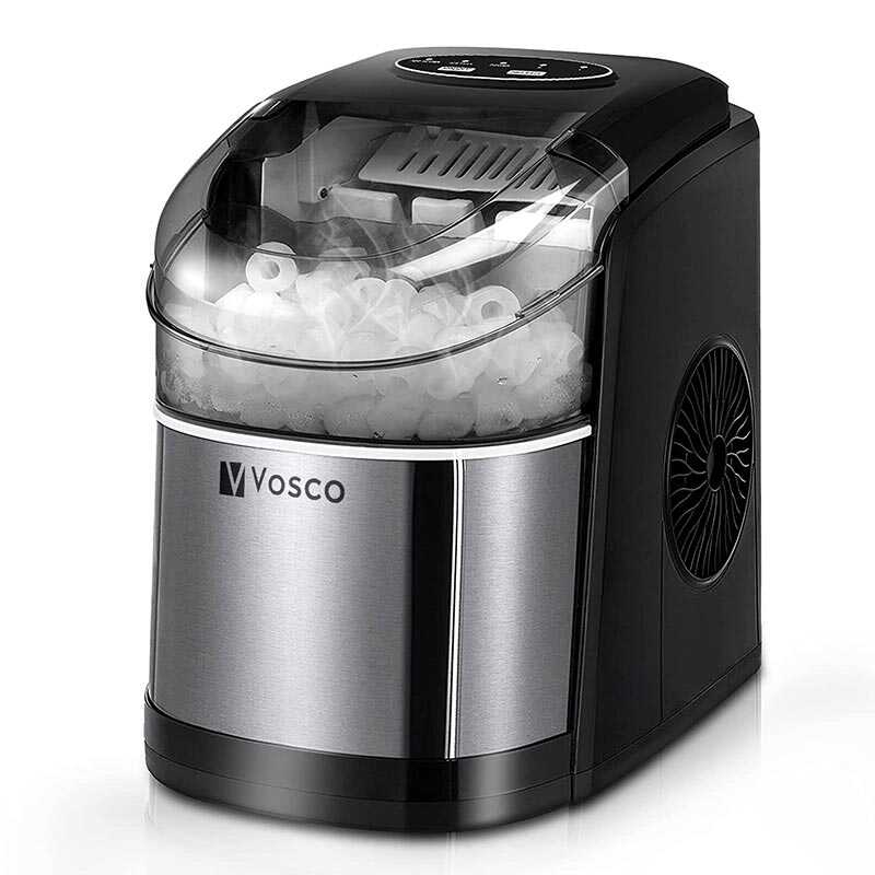 Vosco VSCB-12B Hazneli, Ev Tipi Buz Makinesi, 12 kg/gün Kapasiteli, Ultra Sessiz, Siyah