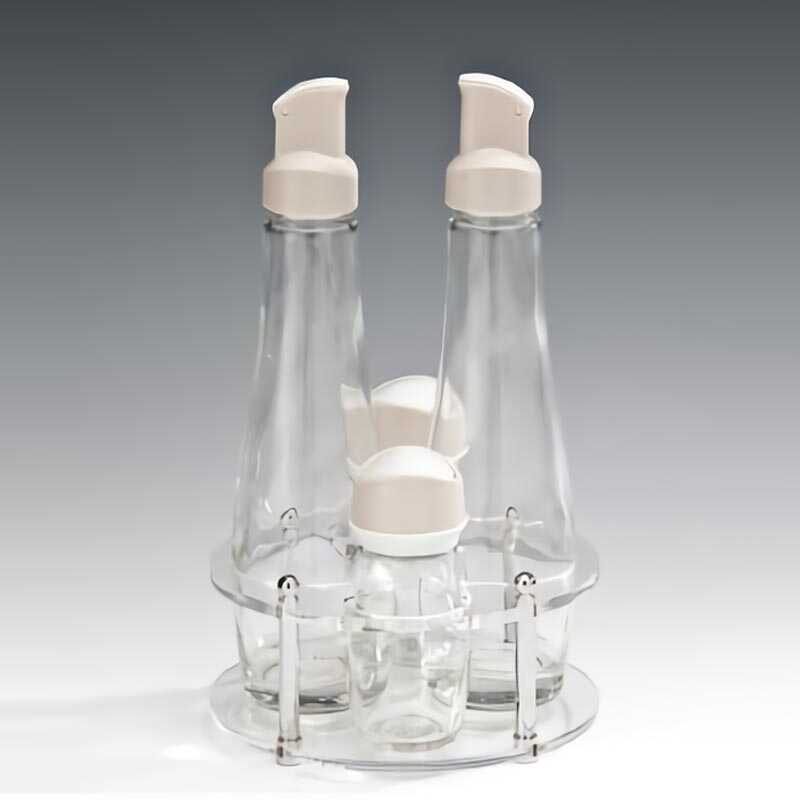 Akrilik stand yapısı ürünlerin bir arada ve düzenli şekilde taşınmasına imkân verirken dayanıklı malzemesi uzun süreli kullanım avantajı sunar. Yağlık, sirkelik ve baharatlıkların birlikte sunulmasını sağlayan kompakt tasarımı sayesinde masa üzerinde pratik ve düzenli kullanım sağlar, kolay temizlenebilir yüzeyi hijyen desteği sunar.