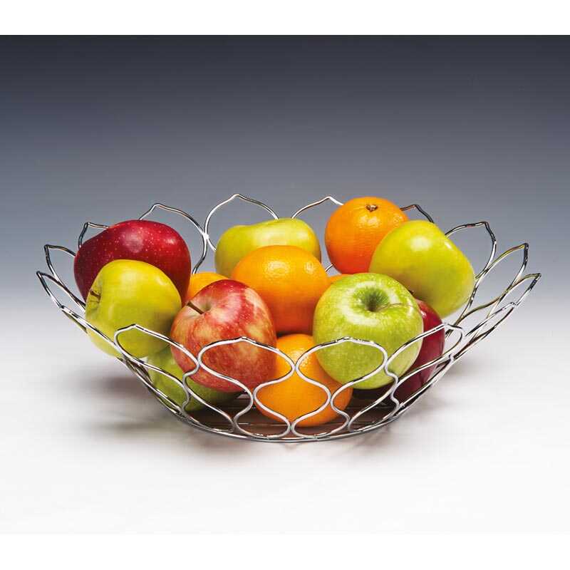 Zicco CS-105011 Tel Meyvelik, krom kaplama yüzeyi ve modern tel tasarımı ile meyveleri şık ve düzenli bir şekilde sergilemek için tasarlanmıştır. Açık formu sayesinde içindeki ürünlerin rahatça görülebilmesine olanak tanır ve servis alanlarına estetik bir dokunuş katar.