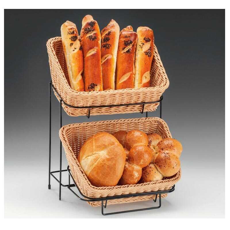 Stand ölçüsü 36x34 cm olup stand yüksekliği 50 cm’dir. Sepet ölçüsü 35x26 cm olup sepet yükseklikleri 18/9 cm’dir. Dayanıklı stand yapısı ve doğal hasır sepet tasarımı hem şık hem de profesyonel bir sunum çözümü sunar. Yoğun servis temposuna uygun sağlam yapısı ile uzun süreli kullanım avantajı sağlar.