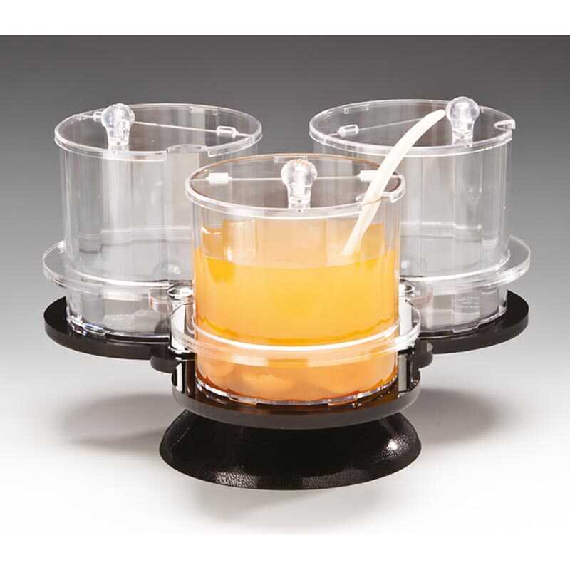 Dayanıklı polikarbon gövdesi, yoğun kullanıma uygun sağlam bir yapı sunar. 3’lü set formu ve toplam 1.5 litre kapasitesi ile farklı sos ve reçellerin aynı anda sunulmasına imkân tanır. Döner mekanizması, servis sırasında hız ve kullanım kolaylığı sağlar. Kolay temizlenebilir yüzeyi hijyen standartlarını destekler.